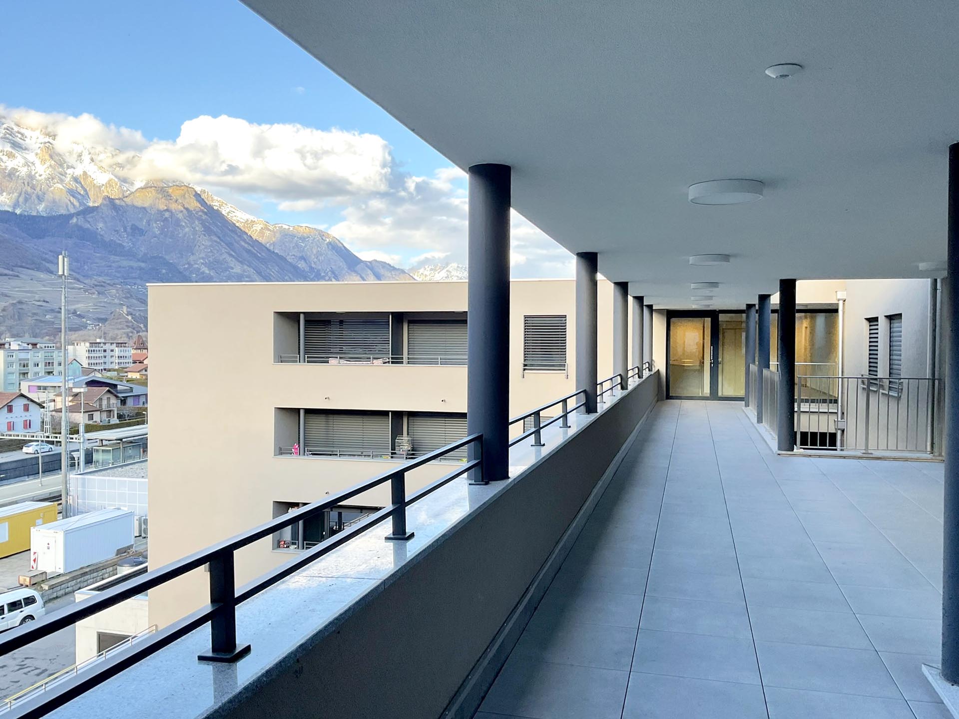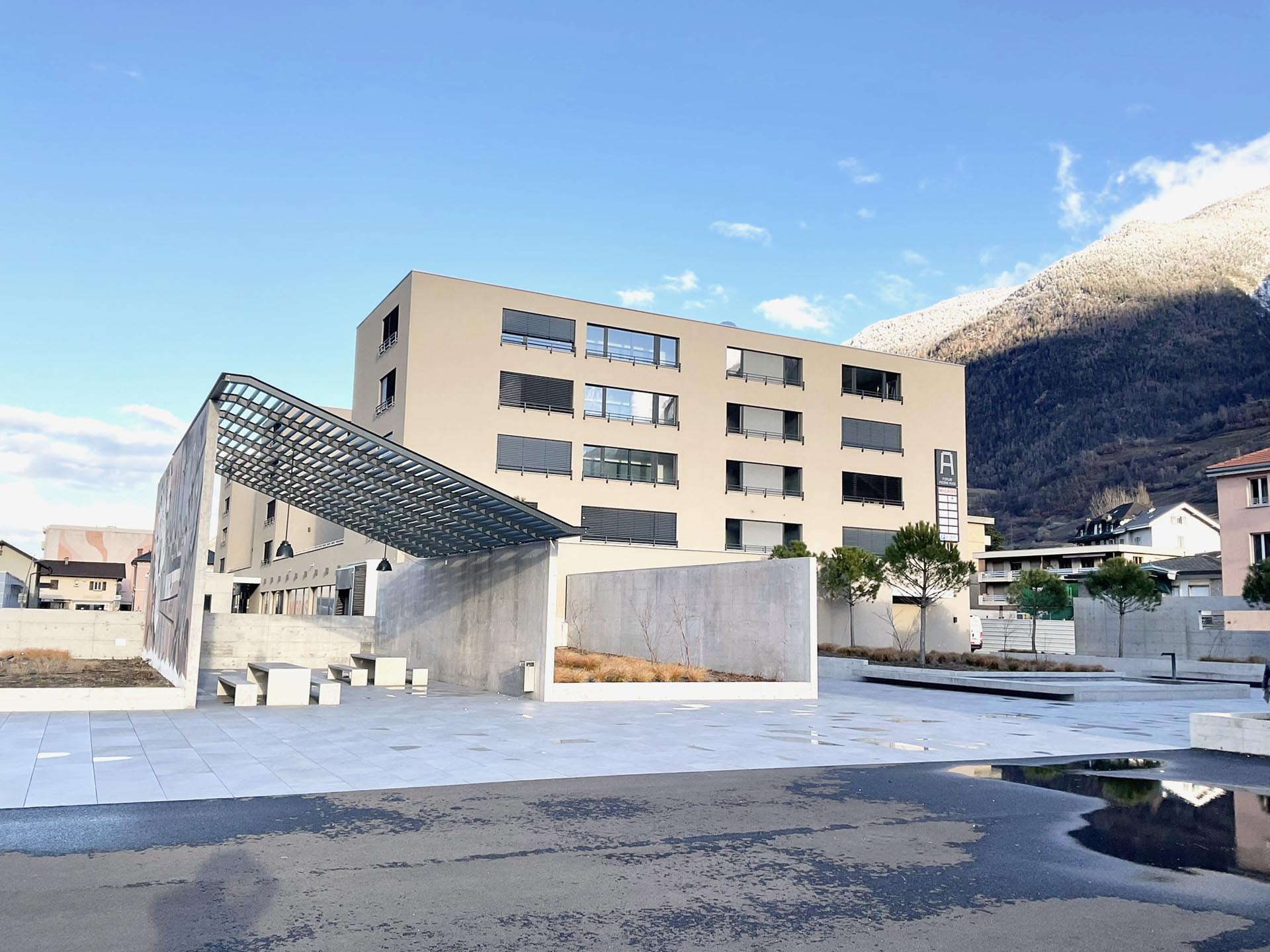 Migros Valais a ouvert ses portes au rez-de-chaussée le 1er juillet 2022 et une pharmacie ouvrira prochainement. Au 1er janvier 2022, 15 logements sur 72 sont loués, dont 2 destinés aux séniors. Les aménagements extérieurs seront prochainement finalisés après un retard dû à la livraison de matière première lié au COVID-19.